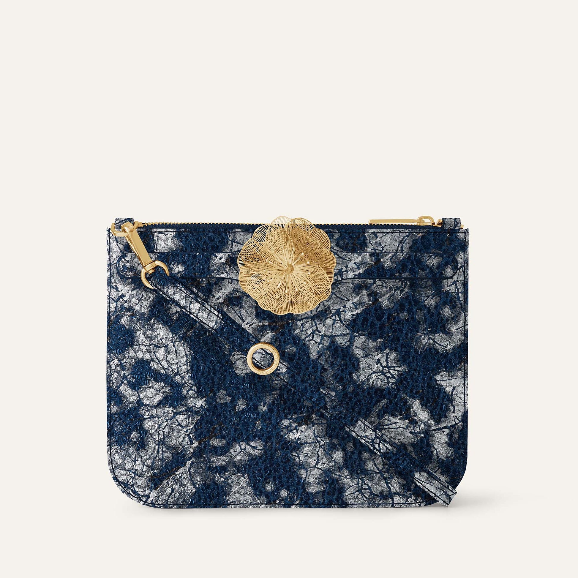 Compact yet surprisingly spacious, fitting essentials like phone, cards, lipstick and keys with room to spare. Streamlined silhouette maintains elegance when carried alone